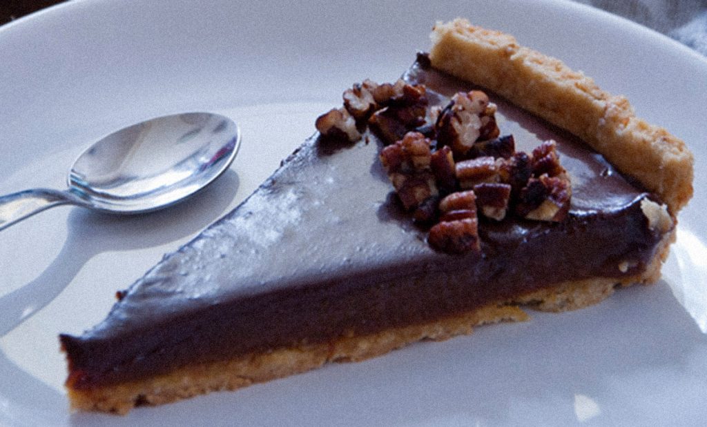Poner a calentar el horno a 180° (Th 6). Quebrar el chocolate en pedacitos y ponerlo a derretir a baño maria con 2 cucharas soperas de agua. Revolver hasta obtener una mezcla untuosa y apagar el fuego. Batir los huevos. De a poco y sin parar de revolver, añadir al chocolate derretido el azúcar, los huevos batidos y la crema. Desenrollar la masa brisée Saint Jacques, separarla del papel mantequilla y ponerla en un molde para tartas; cortar o doblar hacia dentro lo que sobre de masa. Picar el fondo de la masa unas 5-6 veces con un tenedor. Verter la mezcla con chocolate en el fondo de la tarta, y poner al horno por 25 minutos aproximadamente. Para ver si está lista la tarta, basta con insertar la punta de un cuchillo en la parte con chocolate: si sale la punta con chocolate, falta cocción todavía. Dejar que se enfríe completamente la tarta antes de servirla.